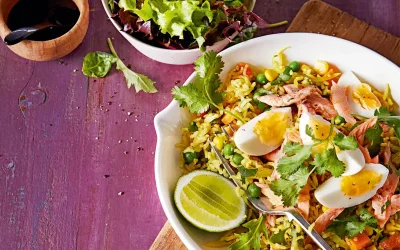 Smoked salmon with curried rice