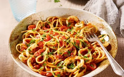 Spaghetti arrabbiata with squid