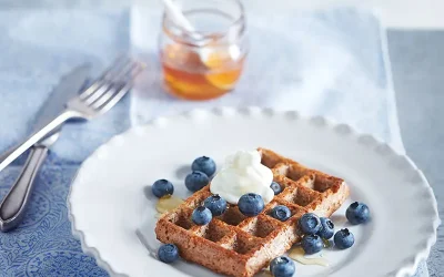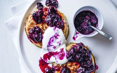 French toast crumpets with blueberry compôte