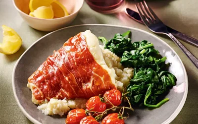 Prosciutto-wrapped haddock with celeriac mash