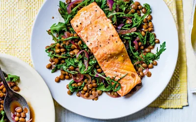 Mustard glazed salmon with lentils