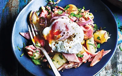 Mushroom & ham frittata with potato salad