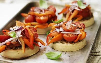 Roasted pepper crumpet pizzas