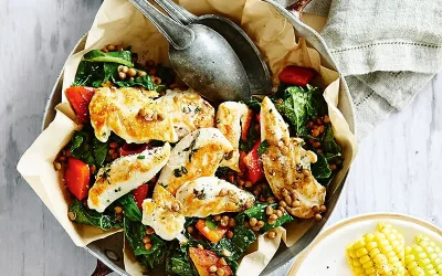 Chicken, lentil & kale braise
