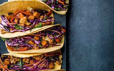 Roasted vegetable tacos with slaw
